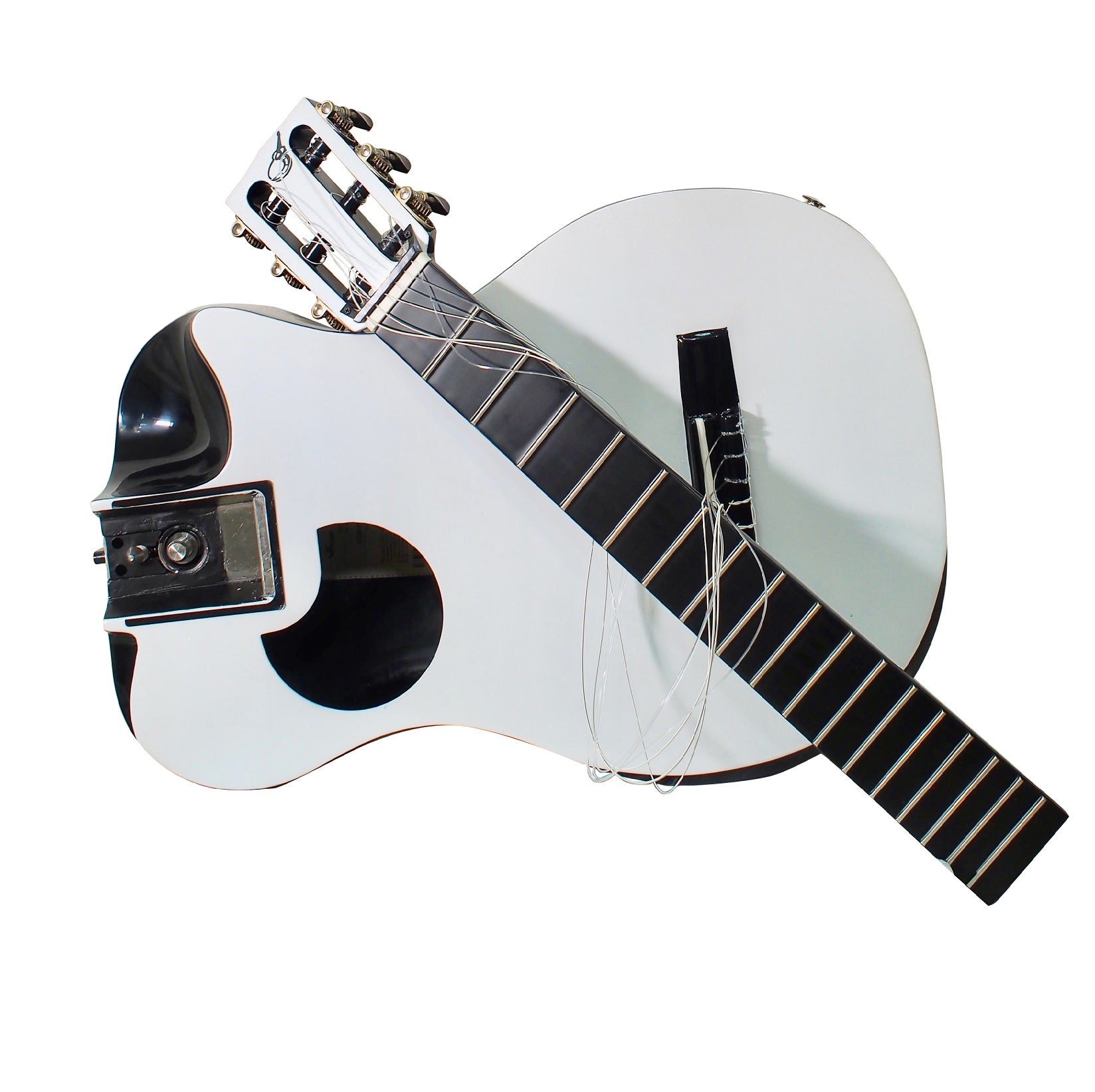 The Overhead™ white top gloss carbon crossover classical travel guitar collapses to carry-on size of 22*14*9 inches! It assembles in 20 seconds with our patented detachable neck system, and our patented soundboard technology and all-carbon construction create a durable instrument with massive tone. A full 25.5 inch (650mm) scale, a versatile 1 7/8″ nut width, best-in-class components, and a wedged ergonomic design make this the most enjoyable guitar you’ll ever play! Tri-piezo pickup and a full-featured TSA compliant carry-on backpack included.